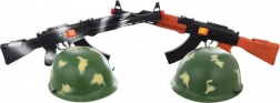 - Mitraillette en plastique à effet de cliquetis, casque militaire