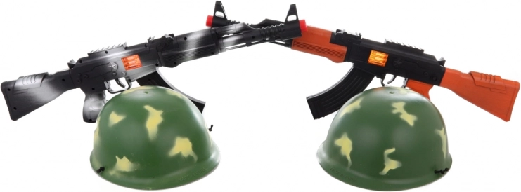 Mitraillette en plastique à effet de cliquetis, casque militaire