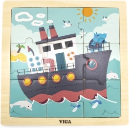 Ce puzzle en bois avec un motif de bateau coloré et d’animaux marins comprend 9 pièces thématiques qui s’insèrent dans des découpes fraisées de la plaque. Des couleurs vives et des formes simples favorisent la concentration et motivent les enfants à assembler encore et encore.