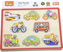 Un puzzle encastrable en bois coloré sur le thème des moyens de transport développe la motricité fine, la coordination œil–main et la reconnaissance des formes. Grâce aux poignées en bois, les pièces sont faciles à saisir même pour les plus petits. Jouet éducatif idéal pour les enfants à partir de 18 mois.