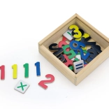 Il contient 37 pièces — chiffres et symboles mathématiques — qui adhèrent de manière fiable aux tableaux ou au réfrigérateur grâce à la couche magnétique. La construction en bois multicouche robuste et les surfaces lisses et vernies garantissent une longue durée de vie et une prise en main confortable pour les petites mains.