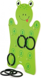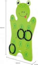 Jeu en bois amusant pour les enfants dès 3 ans, qui développe la motricité fine, la coordination œil-main et la précision. La cible grenouille avec des piquets numérotés transforme chaque lancer en compétition – il suffit de viser la bonne zone de points et de récolter un maximum de points !