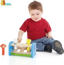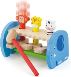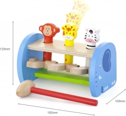Amusant jeu de frappe en bois avec des animaux pour les enfants dès 18 mois, qui développe la motricité fine, la coordination œil–main et la compréhension du lien cause–effet. Après un coup de marteau, les animaux jaillissent joyeusement, ce qui motive à explorer et jouer encore et encore.