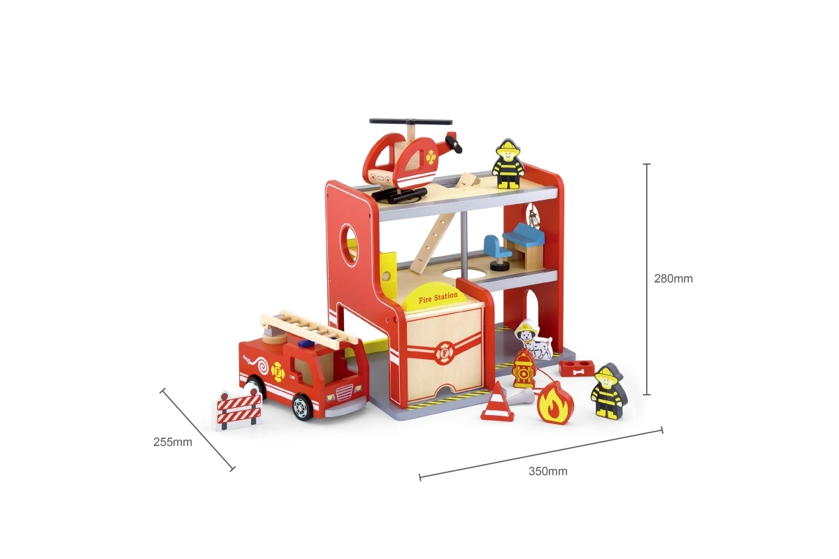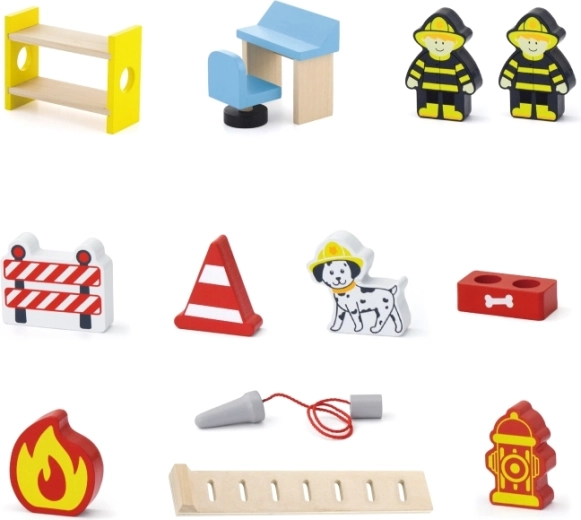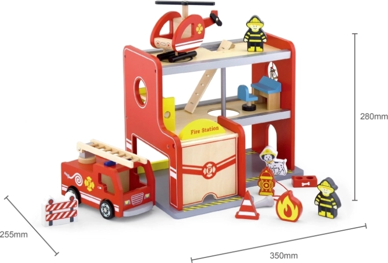 La boîte contient tout pour jouer immédiatement : le bâtiment de la caserne, 2 pompiers, un hélicoptère, un camion de pompiers, un hydrant, un lit superposé, une chaise, un panneau de contrôle et une échelle. Les matériaux et les peintures sont sûrs et non toxiques, afin que les enfants puissent jouer en toute tranquillité. Idéal comme cadeau à la fois plaisant et durable.