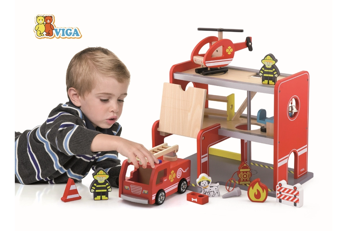 La caserne de pompiers en bois Viga est un ensemble de jeu complet à plusieurs étages qui favorise le jeu de rôle, le développement de la motricité fine et de l’imagination. Les enfants peuvent sortir du garage avec le véhicule, atterrir avec l’hélicoptère sur la plateforme supérieure et glisser par le tube directement vers l’intervention. Les détails colorés et la construction en bois de qualité garantissent un aspect attrayant et une résistance à l’usage quotidien.
