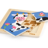 Le puzzle en bois se recompose en une adorable image de vache, ce qui stimule la créativité.