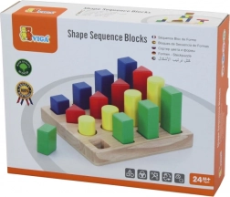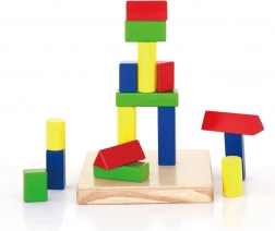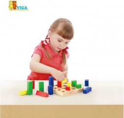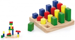 base en bois avec chevilles et ensemble de pièces géométriques colorées