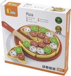Amusante pizza en bois à découper avec plateau et spatule offrant des heures de jeu créatif. Les ingrédients amovibles et la découpe en parts développent la motricité fine, la coordination œil-main et le jeu de rôle des petits chefs.