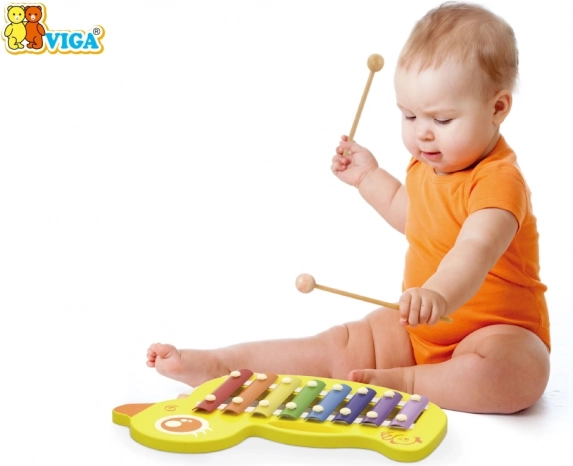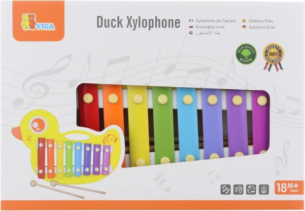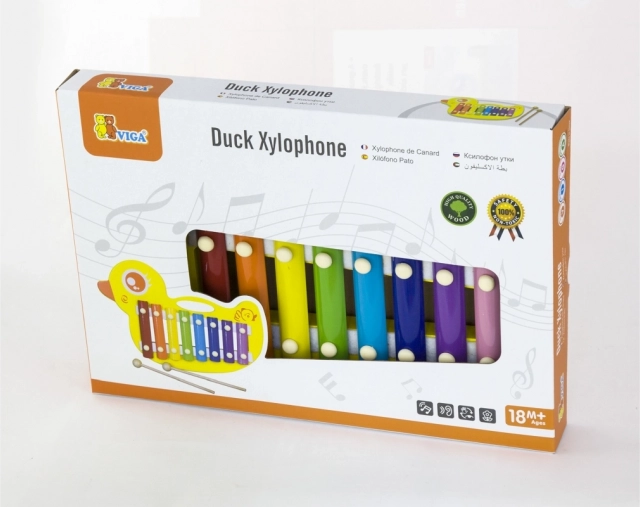 Éveillez l’imagination des enfants avec ce xylophone coloré en forme de petit canard. Le jouet favorise le sens musical, la motricité fine et la coordination œil-main. Grâce à son corps en bois solide et à ses lames métalliques accordées, il offre un son agréable et une longue durée de vie. Convient aux enfants dès 18 mois.