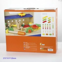 Tous les composants sont adaptés aux petites mains et fabriqués en bois durable. Grâce à l’abondance de vis, d’écrous et de plaquettes, les possibilités de combinaison sont infinies, stimulant l’imagination et la patience. Le set est parfait pour le jeu autonome comme pour les activités en famille.
