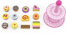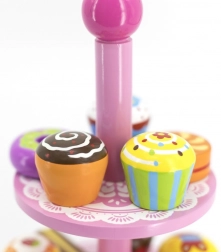 Ce set élégant de desserts en bois sur un présentoir à deux niveaux est idéal pour jouer au café, au goûter ou à la pâtisserie des enfants. Les pièces en bois de qualité, aux couleurs vives, invitent à l’exploration et développent la coordination œil-main.