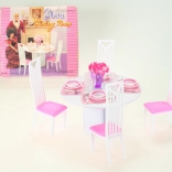 Le set de salle à manger élégant pour poupées Glorie transforme chaque jeu d’enfant en un festin réaliste. Il comprend une table ronde, 4 chaises et 4 services de table complets. Idéal pour le jeu créatif et le développement de l’imagination des enfants à partir de 3 ans.