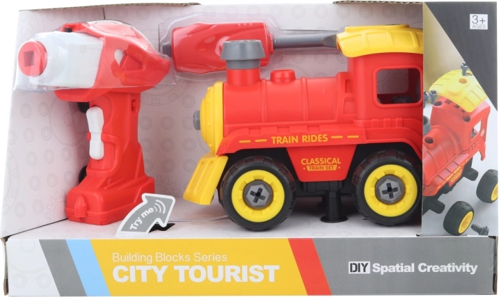 Découvrez un jeu créatif avec un train de construction que les enfants assemblent eux-mêmes puis pilotent à distance. Le tournevis et la perceuse sont inclus, avec un moteur amovible. Une fois le moteur inséré dans la locomotive, elle roule en avant et en arrière, émet des sons réalistes et développe la motricité fine ainsi que les compétences techniques. Idéal pour les enfants dès 3 ans.