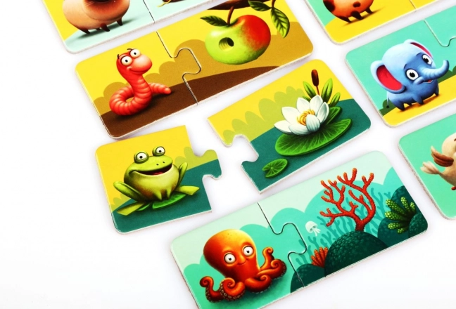 Plongez dans un apprentissage ludique avec le puzzle Puzzlika Ma maison. Les enfants associent l’image d’un animal à son habitat typique, développant naturellement leur raisonnement logique, leur vocabulaire et la coordination œil-main. Les grandes pièces, faciles à saisir, sont idéales pour les petites mains.