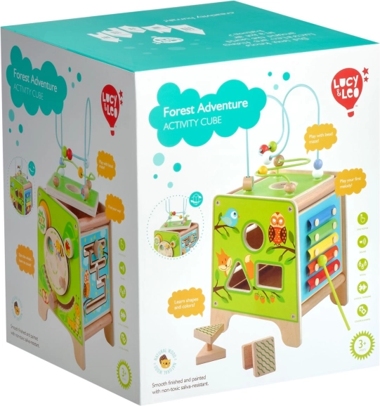 Cube d’activités en bois 5-en-1 avec xylophone LUCY & LEO