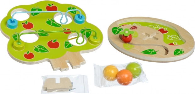Grâce à sa structure en bois robuste et aux dimensions sûres des billes, le jeu est facile même pour les plus petits. Il soutient le développement de la motricité fine, de la coordination main–œil, de la logique et de la patience. Les billes soyeuses et lisses tiennent parfaitement dans les petites mains et motivent naturellement à rejouer.