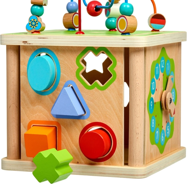 Cube d’activités en bois 5-en-1 LUCY & LEO avec horloge