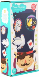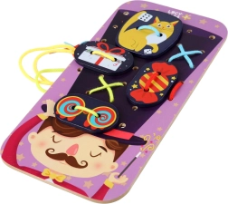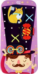 Ce jeu de laçage et d’enfilage amusant sur le thème du magicien invite les enfants dans un monde de fantaisie. Sur la grande plaque représentant la tête du magicien et son chapeau, ils peuvent, à l’aide des lacets, fixer des accessoires colorés – du lapin et des pièces jusqu’aux cartes mystérieuses. En jouant, les enfants exercent la coordination œil-main, la patience et la créativité.