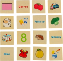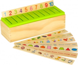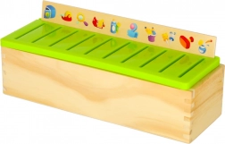 Ce jeu en bois astucieux développe la perception visuelle, la concentration et la coordination œil-main. La tâche consiste à choisir la bonne petite plaquette illustrée et à l’insérer dans la fente sous le motif identique sur la grande réglette. Grâce aux illustrations claires (chiffres, formes, animaux, fruits, objets), les enfants s’entraînent à nommer et à classer.