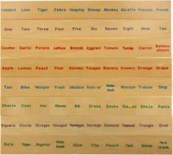 Les enfants insèrent les petites plaquettes illustrées dans les fentes correspondantes sous la grande réglette – ils exercent ainsi l’attention, la logique et la discrimination visuelle.