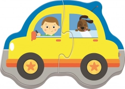 Puzzle pour enfants sur le thème des transports pour les tout-petits, alliant divertissement et apprentissage. Il comprend quatre puzzles de deux pièces avec un bateau, un avion, une voiture et un train, qui aident à développer la motricité et les compétences de résolution des enfants.