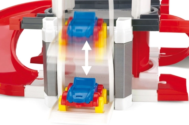 L'ensemble comprend un garage à trois étages avec ascenseur, un système de routes extérieures de 2,3 m de long, deux véhicules Kid Cars, des autocollants et des décorations comme des panneaux, des figurines d'arbres et des garde-corps. La structure colorée et légère offre des heures de plaisir tout en développant diverses compétences chez les enfants.