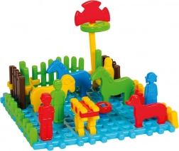 - 4× animaux, famille (papa, maman, garçon, fille), plaque de base, éléments de construction