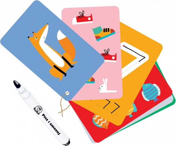 Le set comprend des illustrations colorées et pleines d’humour qui encouragent les enfants à des activités créatives. Les cartes permettent de dessiner et d’effacer à répétition, ce qui en fait un excellent cadeau éducatif pour les enfants d’âge préscolaire. Idéal aussi pour les voyages avec votre enfant.