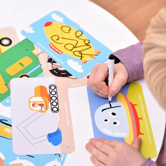Le set CzuCzu Véhicules offre aux enfants de nombreuses activités intelligentes sur le thème des différents moyens de transport. Le livret relié par une cordelette est rempli d’illustrations vives et de tâches qui peuvent être réalisées encore et encore grâce au feutre effaçable. L’emballage pratique avec poignée est parfait à la maison, en visite ou en voiture.