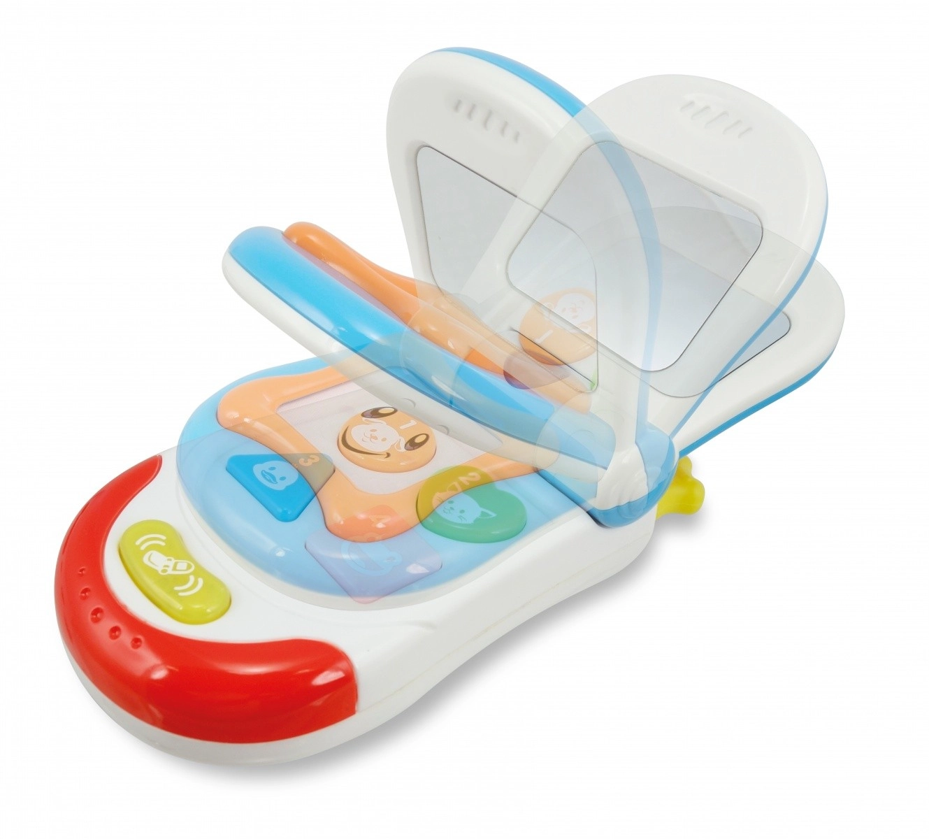Le téléphone souriant est un jouet d’éveil qui captive les enfants pendant longtemps. Grâce à son clapet mobile, à ses mélodies joyeuses et à ses petites lumières clignotantes, il stimule l’ouïe, la vue et la motricité fine. À l’ouverture du clapet apparaît un miroir sécurisé pour faire des grimaces amusantes et découvrir son propre reflet.