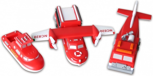 Assemblez le bateau RESCUE, l’hydravion amphibie et le camion de pompiers – ou combinez-les librement entre eux pour créer vos propres originaux.