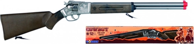 Authentique fusil de cow-boy de la marque Gonher offrant aux enfants comme aux collectionneurs une dose de divertissement et de nostalgie. Conception en métal, mécanisme à barillet et capacité de 12 cartouches pour une expérience de jeu réaliste.