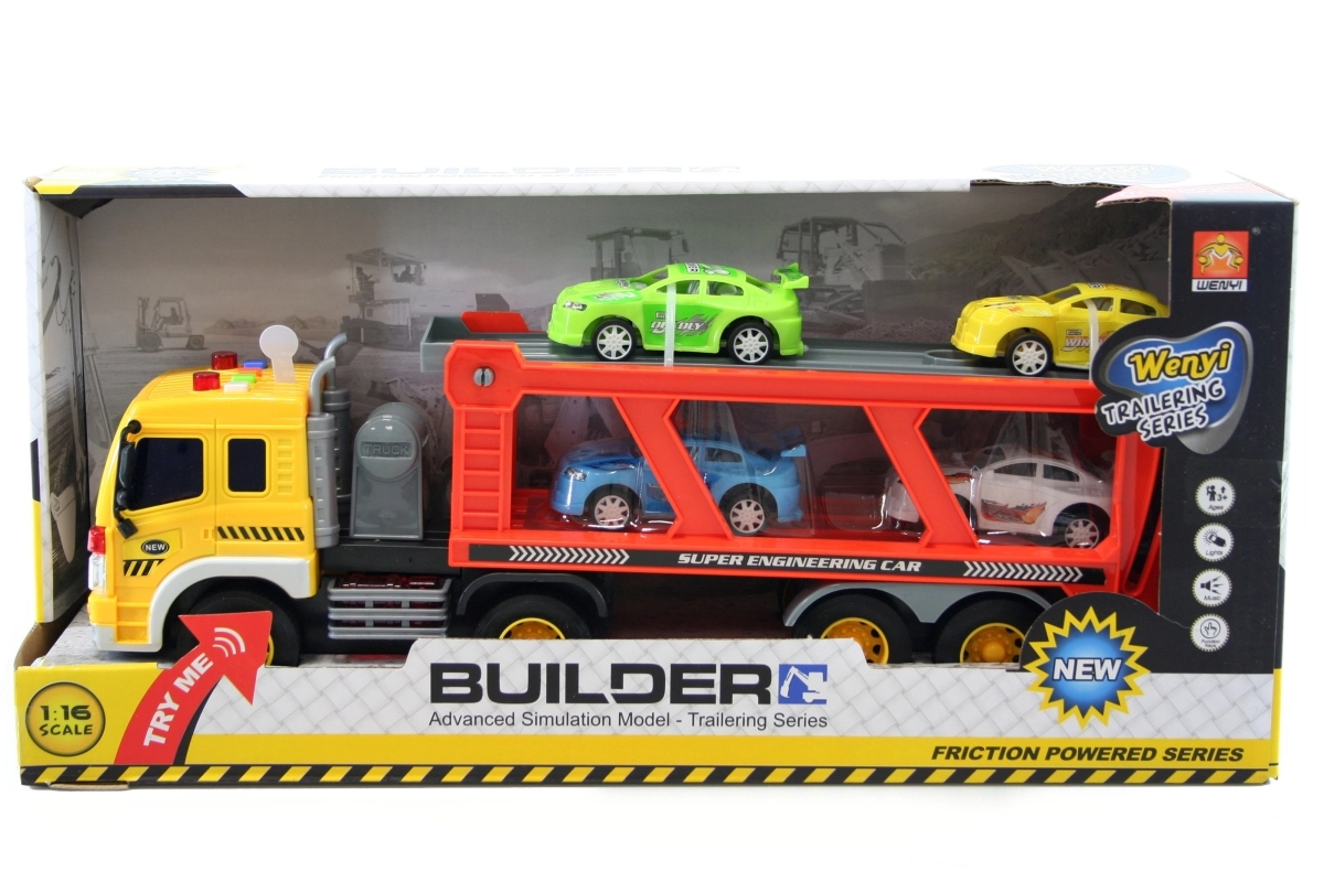 Amusant transporteur de voitures sur batterie offrant des heures de jeu aux enfants dès 3 ans. En appuyant sur les boutons, il s’illumine et émet des sons réalistes, et comprend 4 petites voitures en plastique. À l’échelle 1:16 et avec des dimensions d’environ 40 × 12 cm, il propose une excellente taille pour les circuits à la maison comme pour le jeu libre.