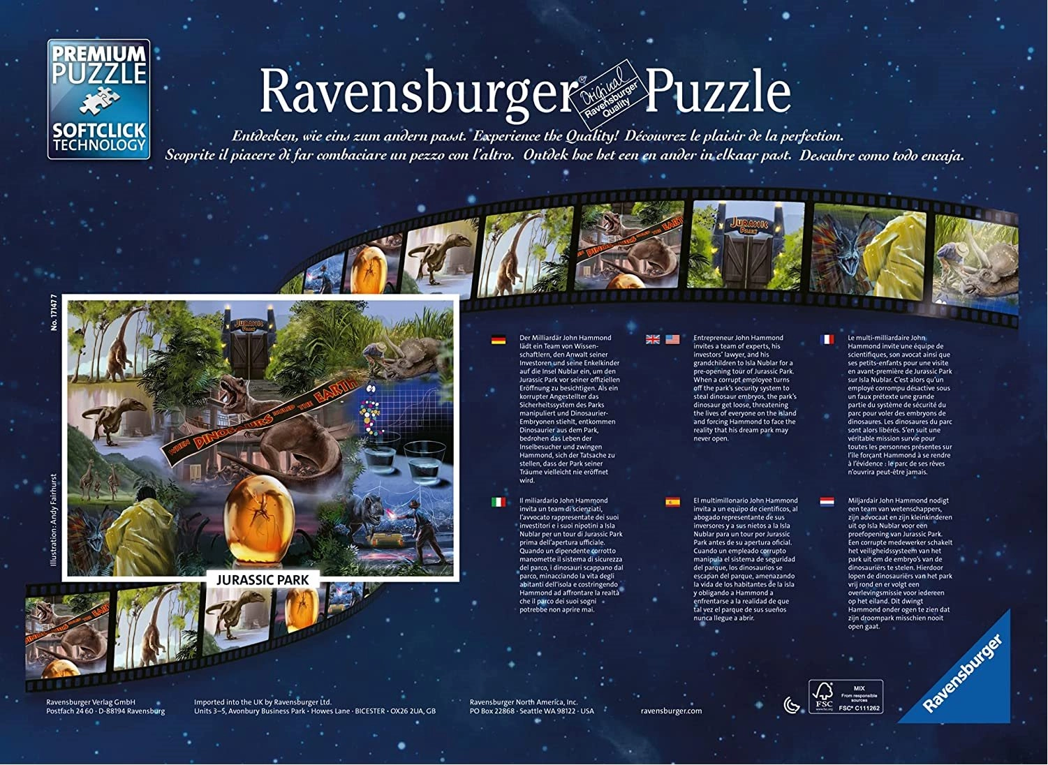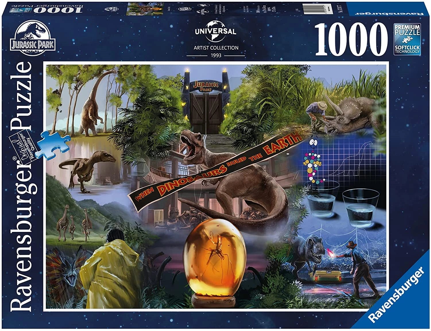 La série de puzzles Ravensburger de 1000 pièces propose des motifs uniques et intéressants à assembler, ici un puzzle inspiré du film Jurassic Park.