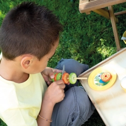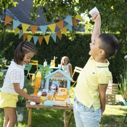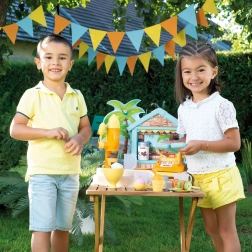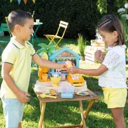 Transformez le jardin ou la plage en stand tropical ! Le bar de plage SMOBY permet aux enfants de préparer des glaces, des boissons et des brochettes de fruits, puis de tout enregistrer sur la caisse. Le coffret comprend 38 accessoires et un format compact, facile à transporter, pour s’amuser à la maison comme en plein air.