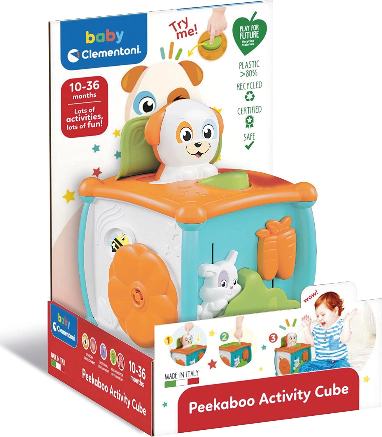Le produit fait partie du programme écologique Clementoni Play for Future, qui sensibilise les enfants à l’importance de la durabilité. Les dimensions du cube sont de 14 × 14 × 14 cm. Les couleurs peuvent varier.