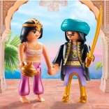 Couple royal oriental vêtu de robes élégantes accueillant ses invités. Ce set Playmobil offre un double plaisir avec des figurines finement détaillées.