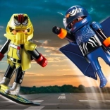 Profitez d’un incroyable spectacle de cascades avec le Duopack Air Stuntshow de PLAYMOBIL. Ce set est conçu pour des enfants de différents âges et stimule leur imagination et leur créativité. Il comprend deux figurines : l’une franchit des obstacles sur un hoverboard, tandis que l’autre vole haut dans les airs.