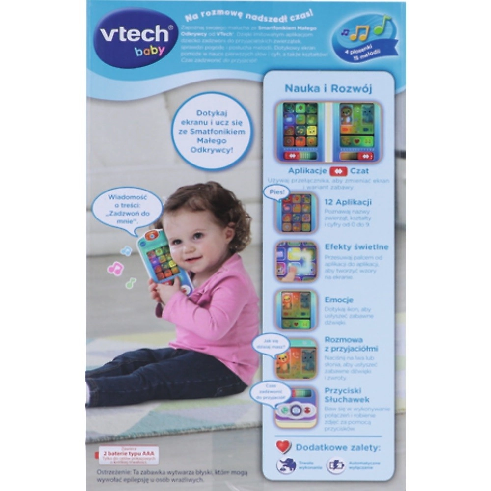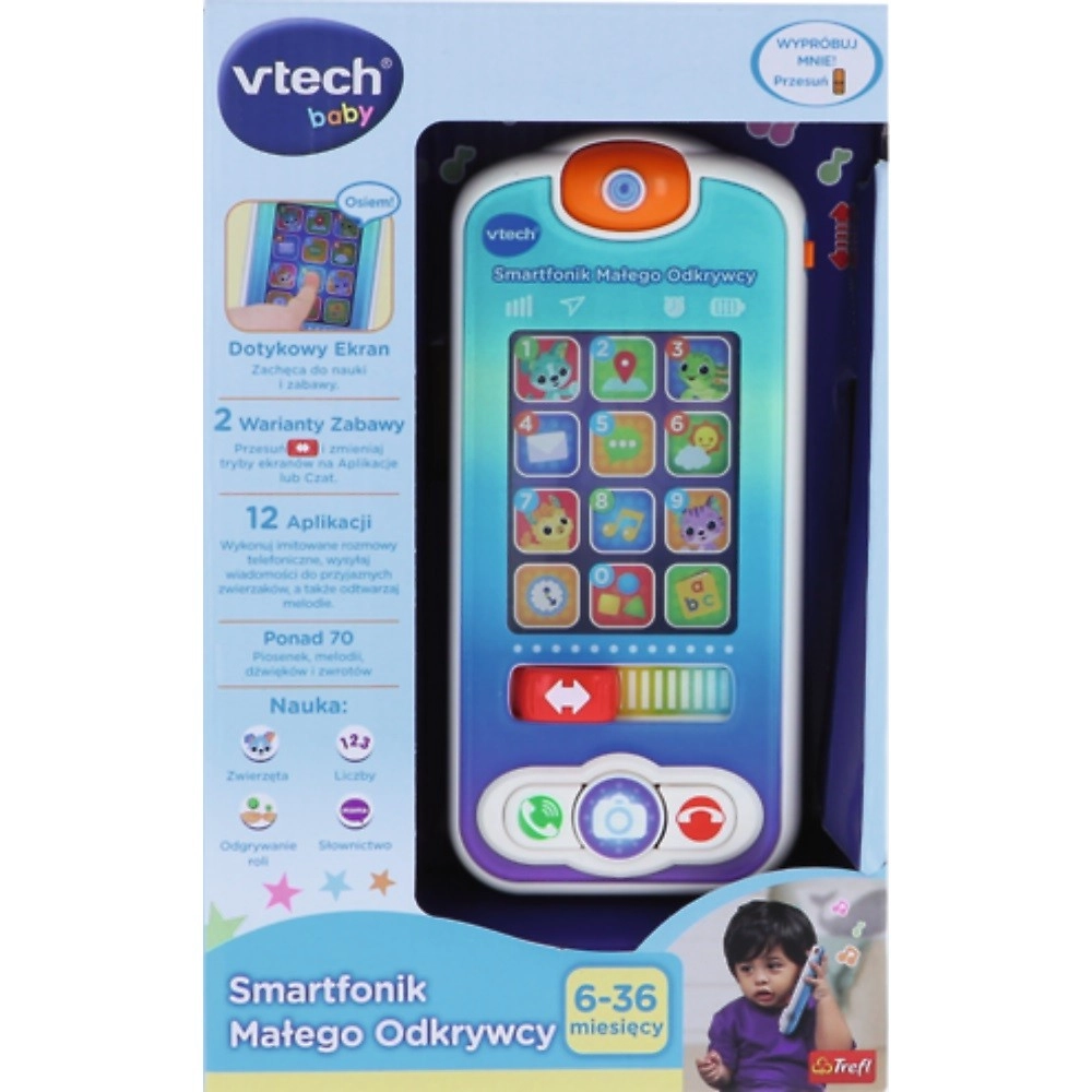 Un téléphone amusant et éducatif pour les tout-petits, qui imite un véritable smartphone. Les enfants peuvent appeler des « amis animaux », explorer des « applications », écouter des mélodies et apprendre leurs premiers mots, chiffres et formes. Grâce à l’écran tactile et aux effets sonores, ils développent la motricité fine, l’écoute et la concentration ainsi que les bases des premiers apprentissages.