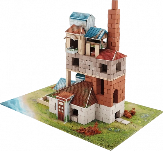 Construisez avec de véritables briques cuites à 1000 °C et complétez la structure avec des éléments en bois authentiques. Le résultat paraît solide et crédible.