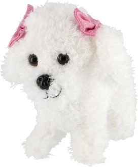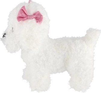 Adorable chien en peluche blanc de 21 cm, idéal comme premier compagnon pour les bébés et les enfants plus grands. Fabriqué en peluche extra douce et moelleuse, avec de délicats petits nœuds roses sur les oreilles, il invite aux câlins du matin au soir. Parfait pour un endormissement paisible et des étreintes apaisantes à tout moment de la journée. Convient dès 0 mois.