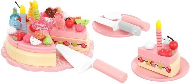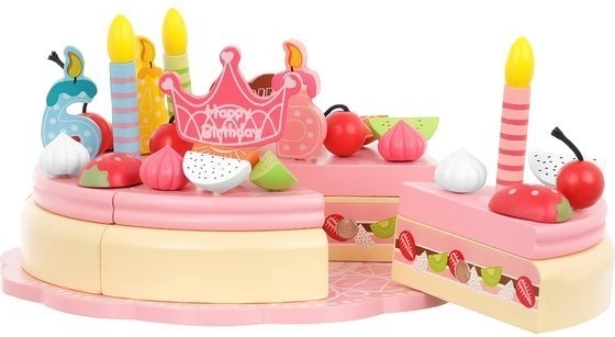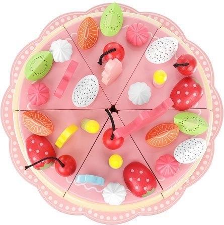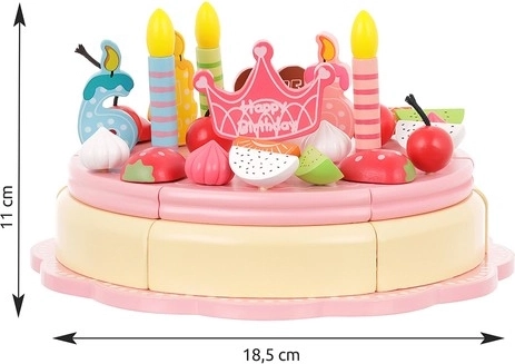 Ce gâteau est fabriqué à partir de bois de haute qualité qui est sûr pour les enfants et offre une beauté intemporelle et une durabilité. Les morceaux du gâteau sont reliés par des aimants, ce qui permet aux enfants de "couper" le gâteau et de le servir sur les assiettes fournies et à l'aide des couverts.