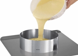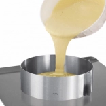 L’acier inoxydable de qualité est hygiénique, n’absorbe pas les odeurs et convient aux fours électriques, à gaz et à convection. L’emballage comprend des clips pour fixer le diamètre, grâce auxquels le cercle conserve sa forme lors du coulage de la pâte et de la cuisson.