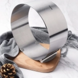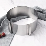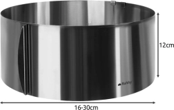 Cercle à gâteau pratique et robuste, hauteur 12 cm, pour la cuisson et le montage de génoises et de gâteaux. Grâce au réglage continu du diamètre 16–30 cm et à l’échelle lisible tous les 2 cm, vous adaptez facilement la taille à chaque recette. Fabriqué en acier inoxydable, il est sans danger pour les aliments, maintient la forme à l’aide de clips de verrouillage et permet de cuire sur n’importe quelle plaque recouverte de papier cuisson.