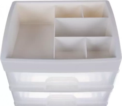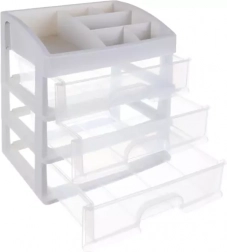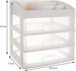 Pratique organisateur en plastique avec 3 tiroirs transparents et une étagère supérieure avec 6 compartiments pour garder vos produits cosmétiques, bijoux et petites fournitures de bureau bien ordonnés au même endroit. Grâce aux façades transparentes, vous trouvez toujours rapidement ce dont vous avez besoin, et ses dimensions compactes conviennent à la coiffeuse, à la salle de bain comme au bureau.