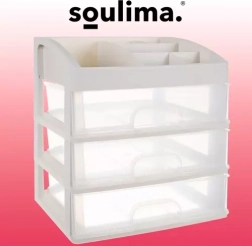 Ce organiseur polyvalent allie classement clair et format compact. Les trois tiroirs transparents de même taille sont idéaux pour les palettes, pinceaux, rouges à lèvres ou bijoux, tandis que le niveau supérieur avec 6 compartiments différents accueille flacons, crèmes et petits accessoires. Son aspect blanc lait/translucide s’intègre élégamment à tout intérieur.