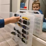 Mettez de l’ordre dans la chambre des enfants avec le Kruzzel organiseur pour petites voitures. Cette mallette transparente offre jusqu’à 46 compartiments pour une organisation facile et un transport pratique grâce à sa poignée.