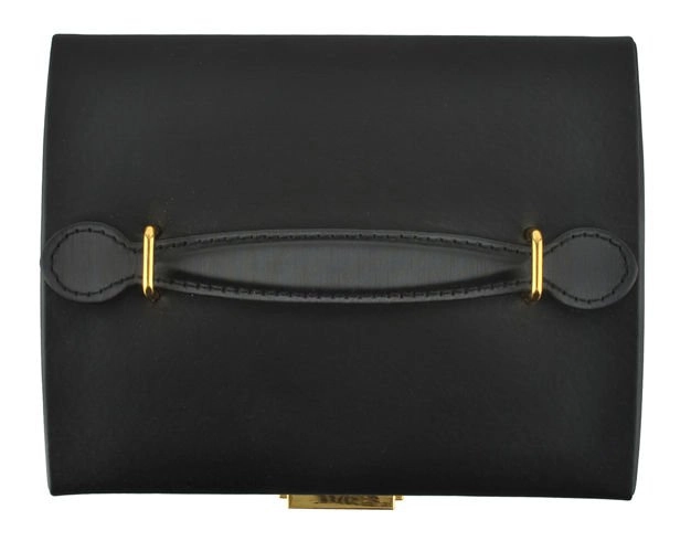 La doublure intérieure en matière douce protège délicatement la surface des bijoux pour éviter les rayures. Grâce à sa poignée pratique, la boîte est facile à transporter et, avec ses dimensions compactes, elle trouve sa place sur une coiffeuse comme dans un tiroir. La couleur noire intemporelle et les accents dorés soulignent le caractère élégant de l’intérieur.