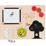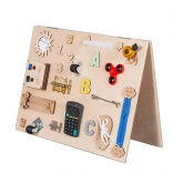Cette planche manipulatrice en bois est pleine de divers éléments de jeu qui aident les enfants à développer leurs compétences. Les enfants peuvent jouer avec différents mécanismes interactifs qui garantissent des heures de plaisir.