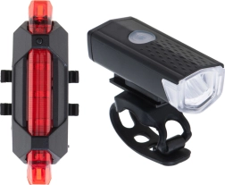 Sécurité et visibilité sur votre vélo assurées avec cet ensemble de lumières LED. Comprend une lumière avant et arrière avec recharge USB et un montage facile.